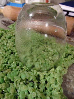 I used a glass to cut round shapes from the rice krispies.
